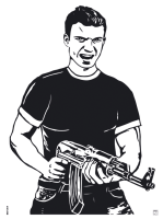 Man with submachine gun.