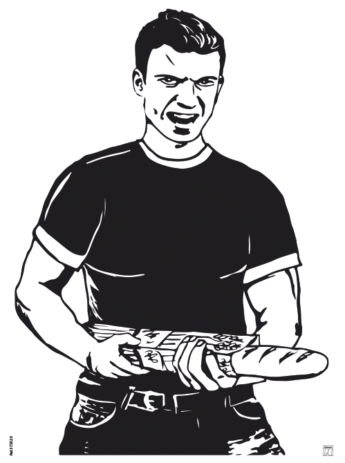 Man with french bread.