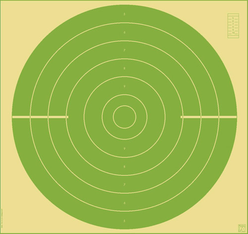 | Description: | Target for Free Pistol Standard, 22, ISSF, black, red, green & blue. | Description: | Target for Rapid Pistol, ISSF, black, red, green & blue. |
